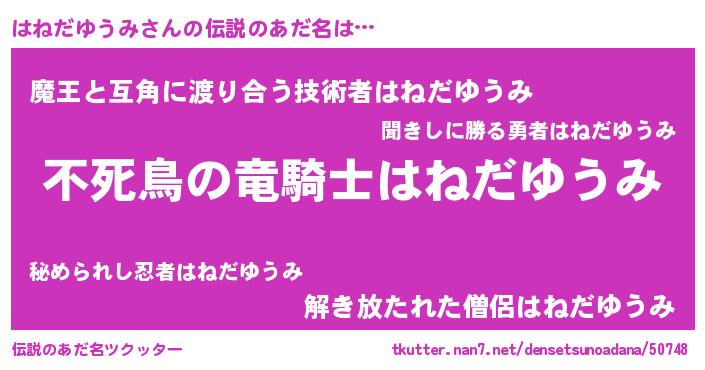 | ヒーロー風カッコイイあだ名 | 『仮面ハネダー』『スーパーハネダユウミ』 |