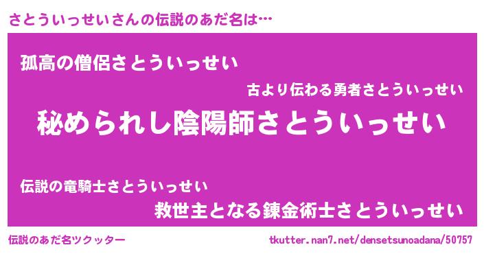 | 意味不明あだ名 | 『自称さとういっせい』 |