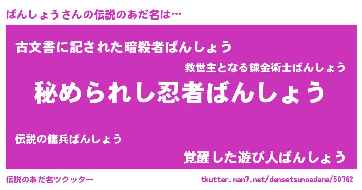 | 意味不明あだ名 | 『自称ばんしょう』『永久保存ばんしょう』 |