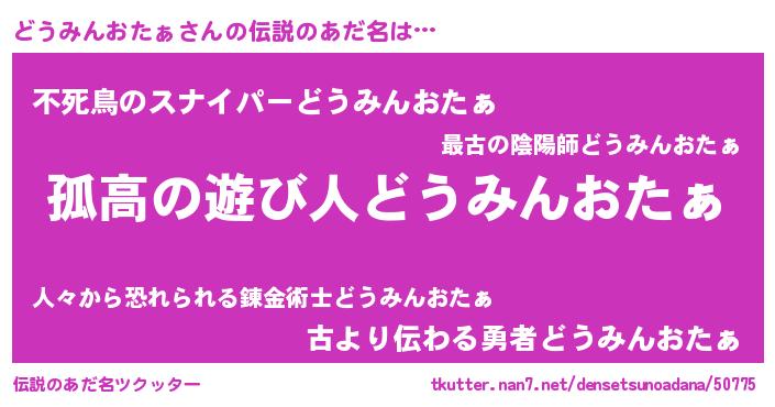 | 意味不明あだ名 | 『とにかく怪しいどうみんおたぁ』 |