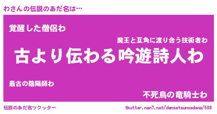 | 胡散臭い通販商品みたいなあだ名 | 『世界中を虜にした100年もののヴィンテージワイン…その名も「わ」』 |