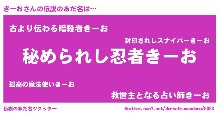 | 意味不明あだ名 | 『きーおフォーエバー』『自称きーお』 |