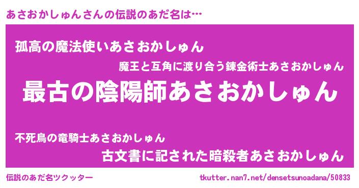 | 意味不明あだ名 | 『あさおかしゅんフォーエバー』 |