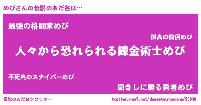 | 胡散臭い通販商品みたいなあだ名 | 『ガンによく効く冬虫夏草…その名も「めび」』 |