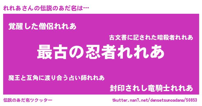 | ヒーロー風カッコイイあだ名 | 『ウルトラれれあマン』『仮面レレダー』 |