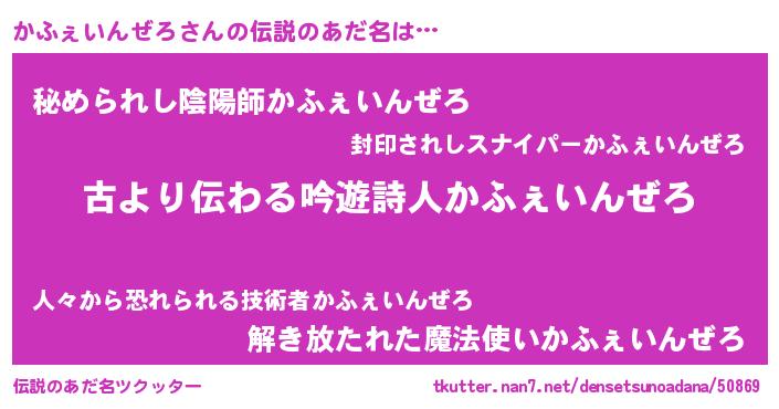 | 意味不明あだ名 | 『永久保存かふぇいんぜろ』 |