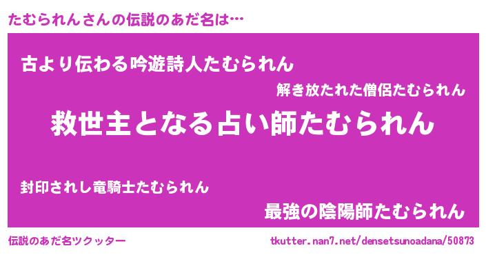 | ヒーロー風カッコイイあだ名 | 『天空の使者たむられん』『幻影騎士タム』 |
