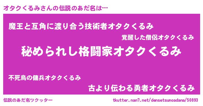 | 意味不明あだ名 | 『オタクくるみフォーエバー』 |