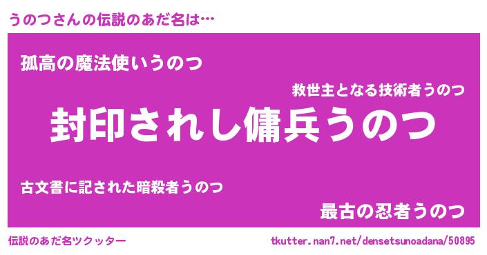 | 女子向けラノベタイトル風あだ名 | 『闇のうのつ』『横柄うのつと宰相陛下』 |