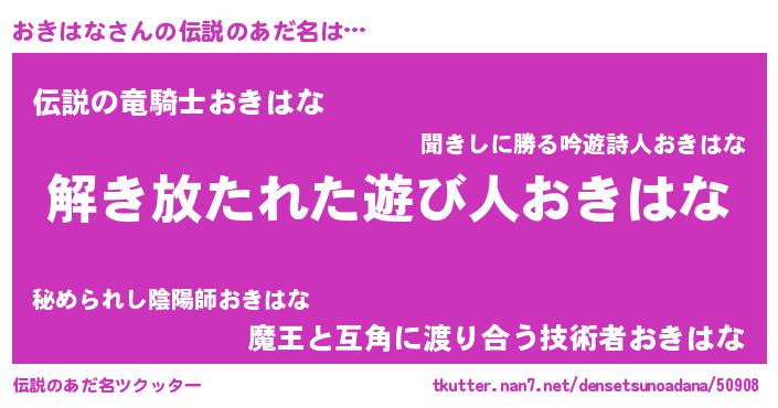 | 意味不明あだ名 | 『とにかく怪しいおきはな』 |