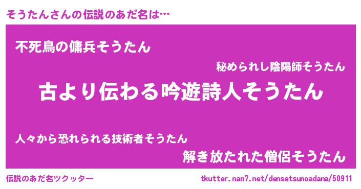 | 男性向けラノベタイトル風あだ名 | 『そうたんという概念が存在しない退屈な世界 』 |