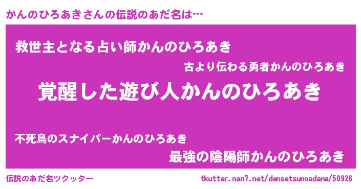 | 男性向けラノベタイトル風あだ名 | 『かんのひろあきに滅ぼされるだけの簡単なお仕事です』 |