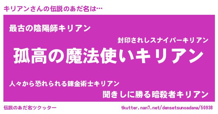 | 胡散臭い通販商品みたいなあだ名 | 『信頼と実績のサプリメント…その名も「キリアン」』 |