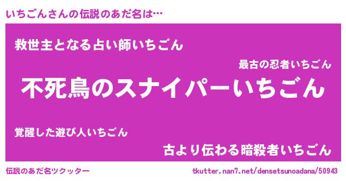 | ヒーロー風カッコイイあだ名 | 『サイバー戦士イチゴン』『ネオイチゴン』 |