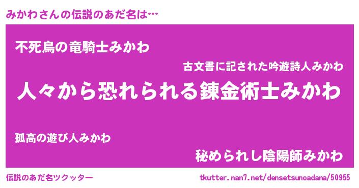 | ヒーロー風カッコイイあだ名 | 『友情の使者みかわ』『スーパーミカワ』 |
