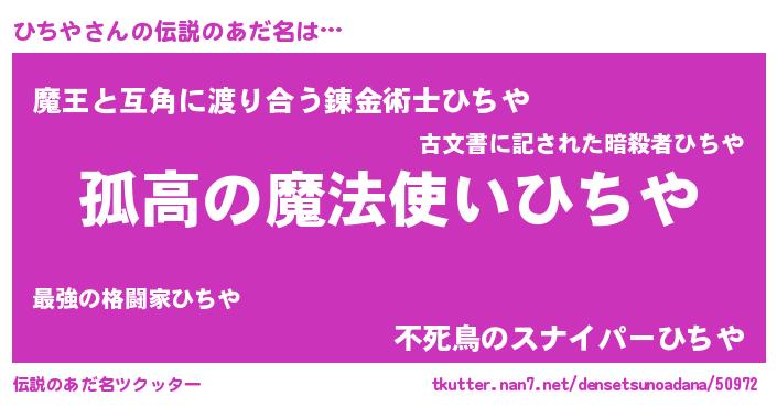 | ヒーロー風カッコイイあだ名 | 『ウルトラ戦士ヒチヤ』『幻影騎士ヒチ』 |