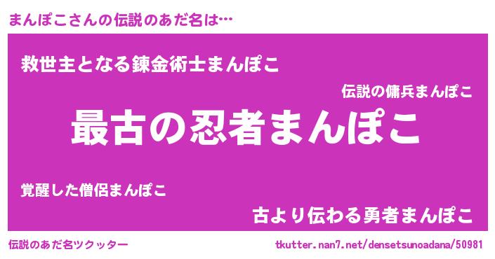 | ヒーロー風カッコイイあだ名 | 『ウルトラまんぽこマン』『仮面マンダー』 |