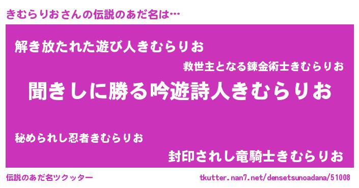 | 女子向けラノベタイトル風あだ名 | 『きむらりおなんてお断りですっ。』 |