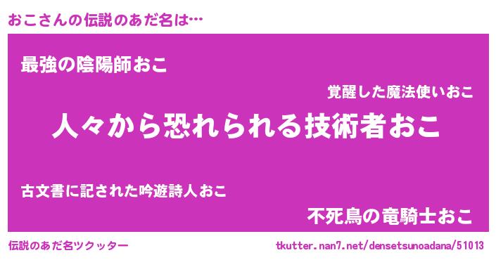 | ヒーロー風カッコイイあだ名 | 『正義の使者おこ』『ウルトラおこマン』 |