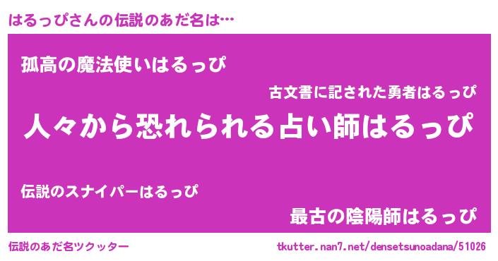 | 男性向けラノベタイトル風あだ名 | 『緋弾のハルッピ』 |