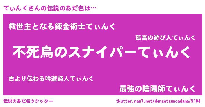 | 意味不明あだ名 | 『住所不定無職てぃんく(84歳)』 |
