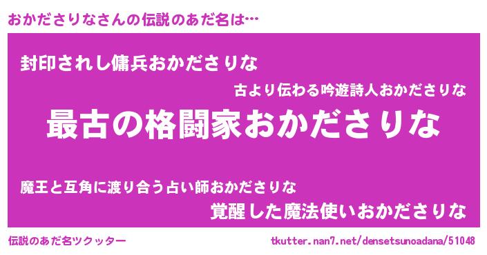 | 意味不明あだ名 | 『自称おかださりな』 |