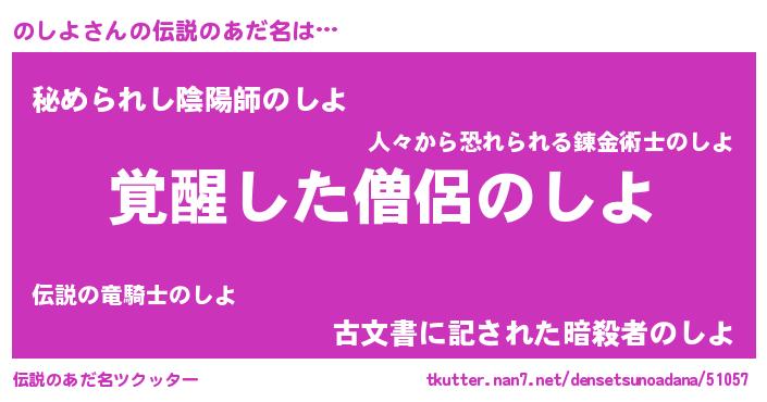 | ヒーロー風カッコイイあだ名 | 『炎刃騎士ノシ』『超時空戦士ノシヨ』 |