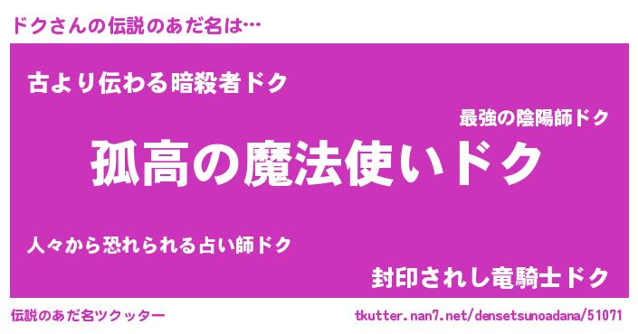 | 胡散臭い通販商品みたいなあだ名 | 『信頼と実績のサプリメント…その名も「ドク」』 |