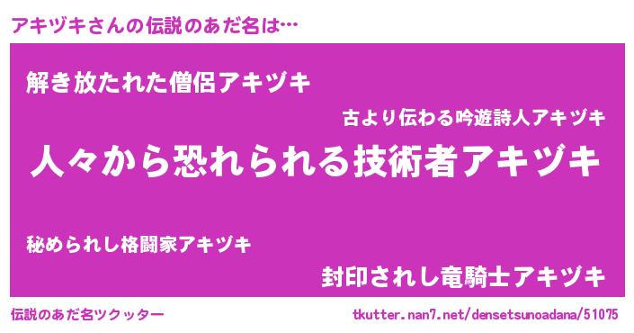 | ヒーロー風カッコイイあだ名 | 『仮面アキダー』『愛の使者アキヅキ』 |