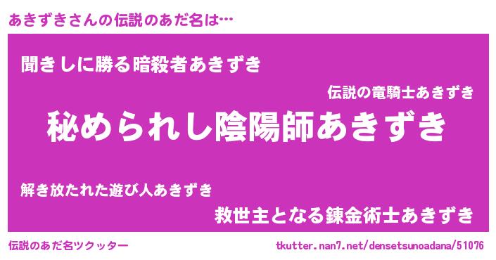 | ファンタジー風あだ名 | 『エターナルアキズキー』 |