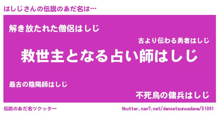 | 男性向けラノベタイトル風あだ名 | 『ノーゲーム・ノーハシジ』 |