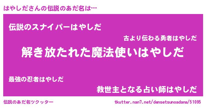 | 男性向けラノベタイトル風あだ名 | 『ダンジョンにはやしだを求めるのは間違っているだろうか』 |