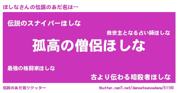 | ヒーロー風カッコイイあだ名 | 『暗黒騎士ホシ』『スーパーホシナ』 |
