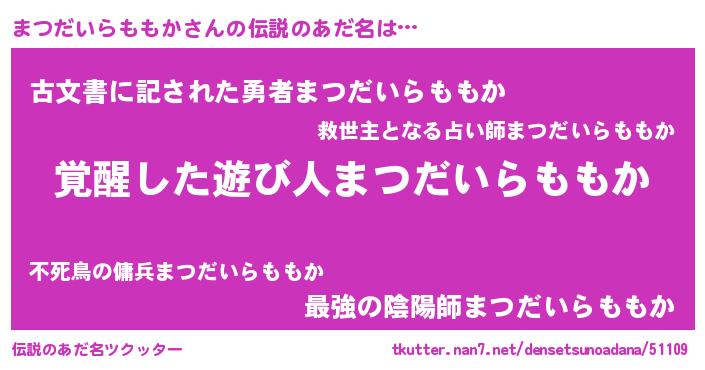| 女子向けラノベタイトル風あだ名 | 『まつだいらももかストレイドッグス』 |