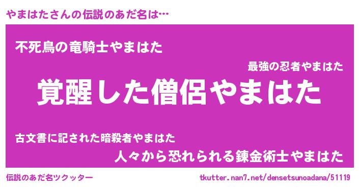 | 意味不明あだ名 | 『とにかく怪しいやまはた』 |