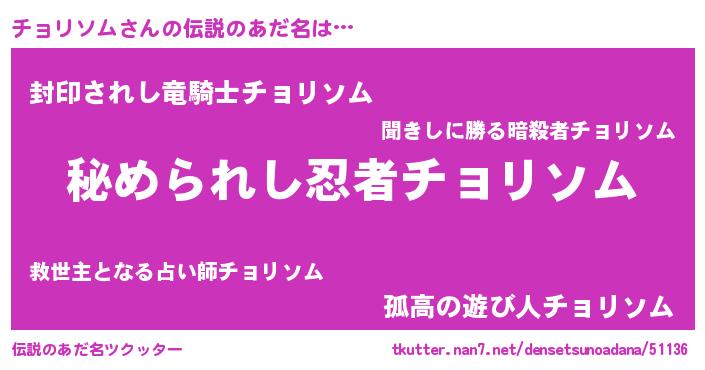 | ヒーロー風カッコイイあだ名 | 『ウルトラチョリソムマン』 |