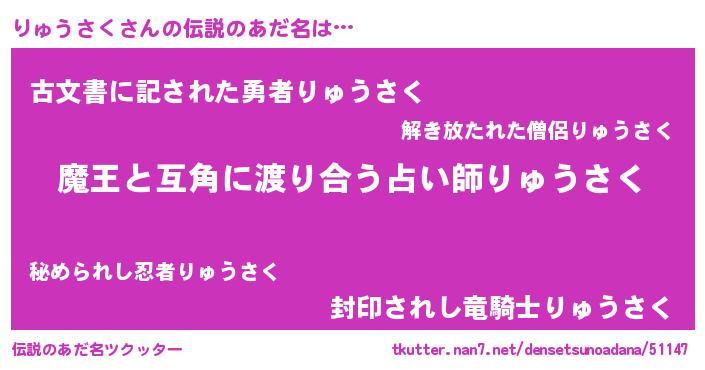 | ヒーロー風カッコイイあだ名 | 『愛の使者りゅうさく』『ネオリュウサク』 |