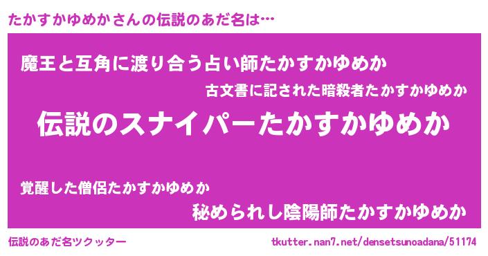 | 胡散臭い通販商品みたいなあだ名 | 『必ず成功する霊験あらたかなお札…その名も「たかすかゆめか」』 |