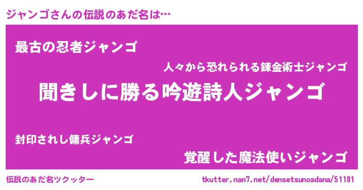 | 意味不明あだ名 | 『永久保存ジャンゴ』 |