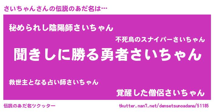 | 意味不明あだ名 | 『永久保存さいちゃん』 |