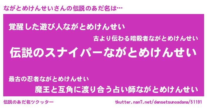 | ヒーロー風カッコイイあだ名 | 『スーパーナガトメケンセイ』 |