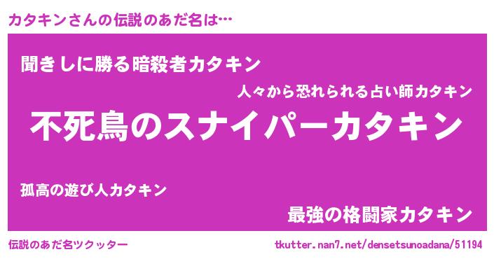 | ヒーロー風カッコイイあだ名 | 『スーパーカタキン』『ネオカタキン』 |