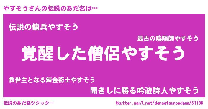 | ヒーロー風カッコイイあだ名 | 『炎刃騎士ヤス』『スーパーヤスソウ』 |