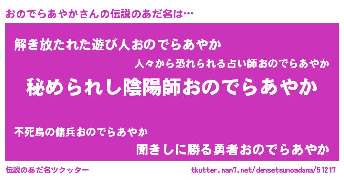 おのでらあやかさんの伝説のあだ名をツクッター!
