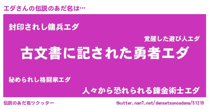 | ヒーロー風カッコイイあだ名 | 『ネオエダ』『スーパーエダ』 |