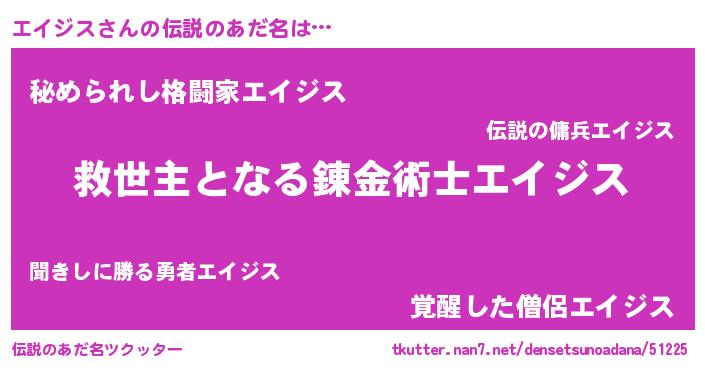 | 意味不明あだ名 | 『住所不定無職エイジス(81歳)』 |