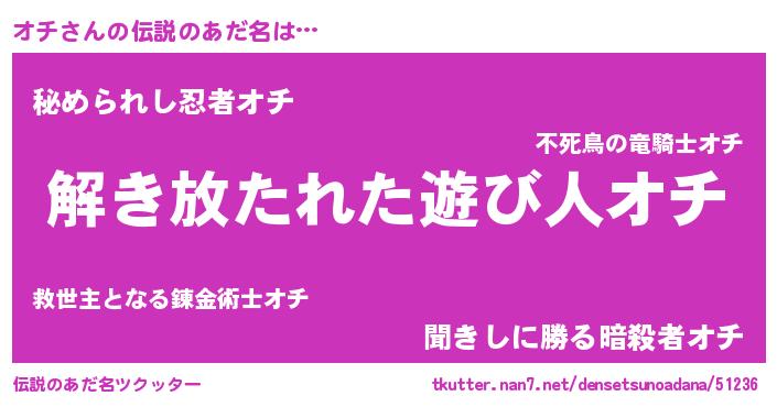 | ヒーロー風カッコイイあだ名 | 『魔戒騎士オチ』『ウルトラオチマン』 |