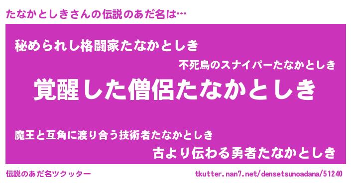 | ポケモン風あだ名 | 『ヒタナカトシキ』『タナカダネ』 |