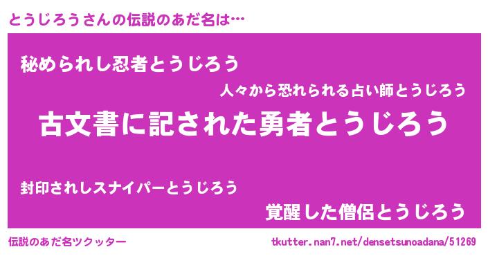 | 意味不明あだ名 | 『住所不定無職とうじろう(95歳)』 |