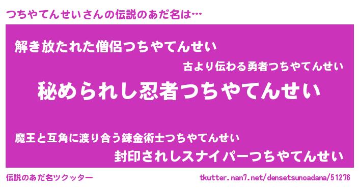| 男性向けラノベタイトル風あだ名 | 『ツチヤテンセイスレイヤー』 |